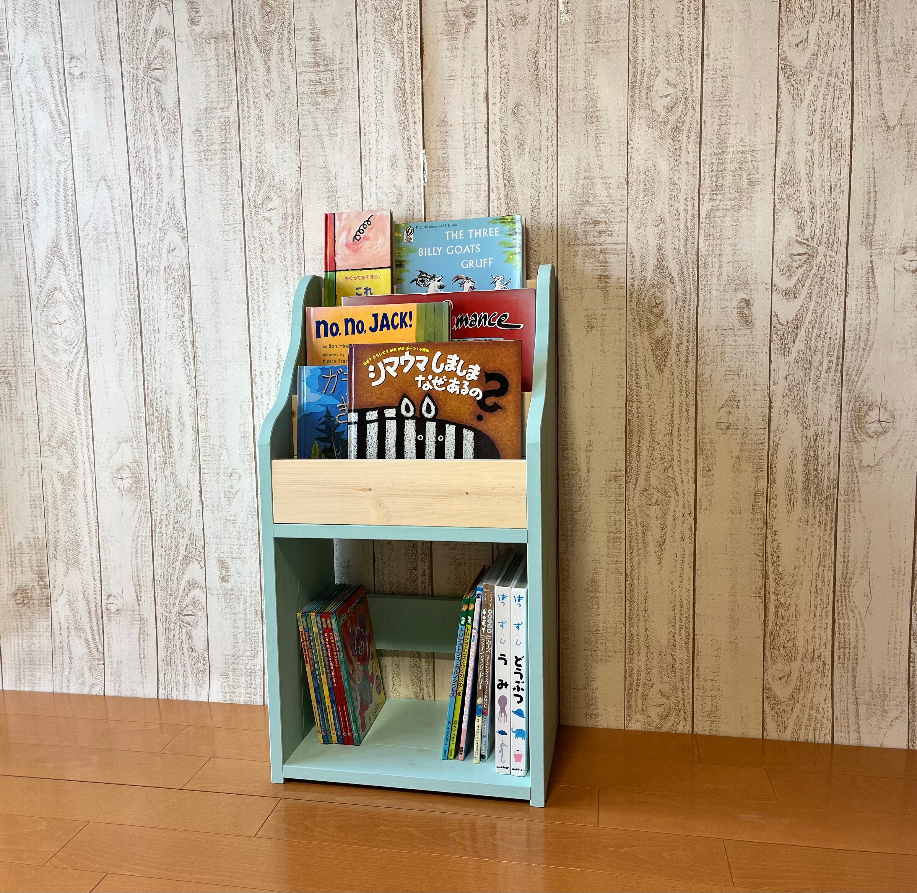 【送料無料】表紙の見える絵本棚 絵本棚 マガジンラック 家具 ハンドメイド オーダー ミント&ミディアム~39cm