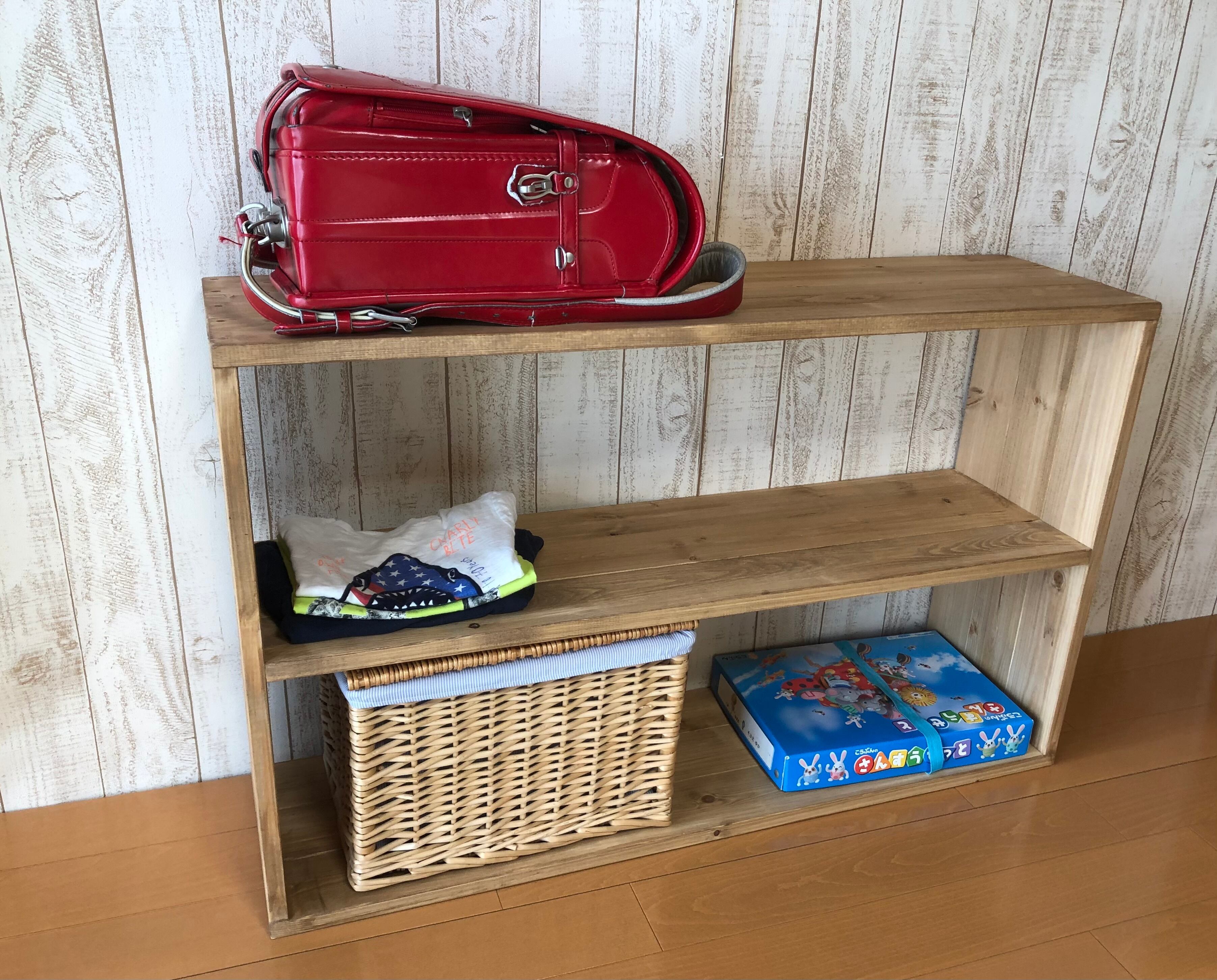 本やおもちゃ、教科書、そしてランドセルまで。スッキリ収納できる木のラックができました
