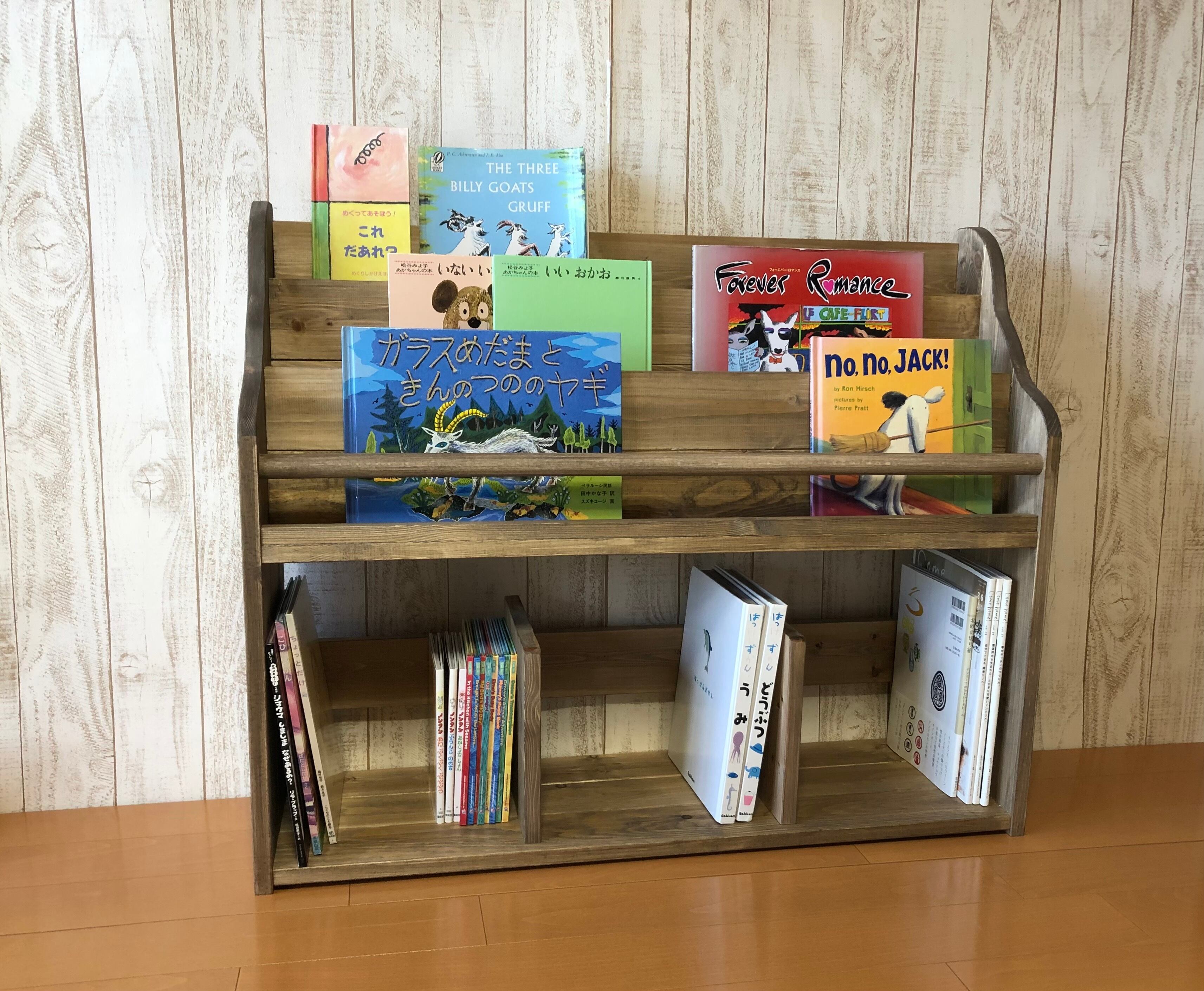 本棚の上部は表紙を立てかけて置いて頂くことが出来、お子様が手に取りやすく、お気に入りの本を見つけやすいです。