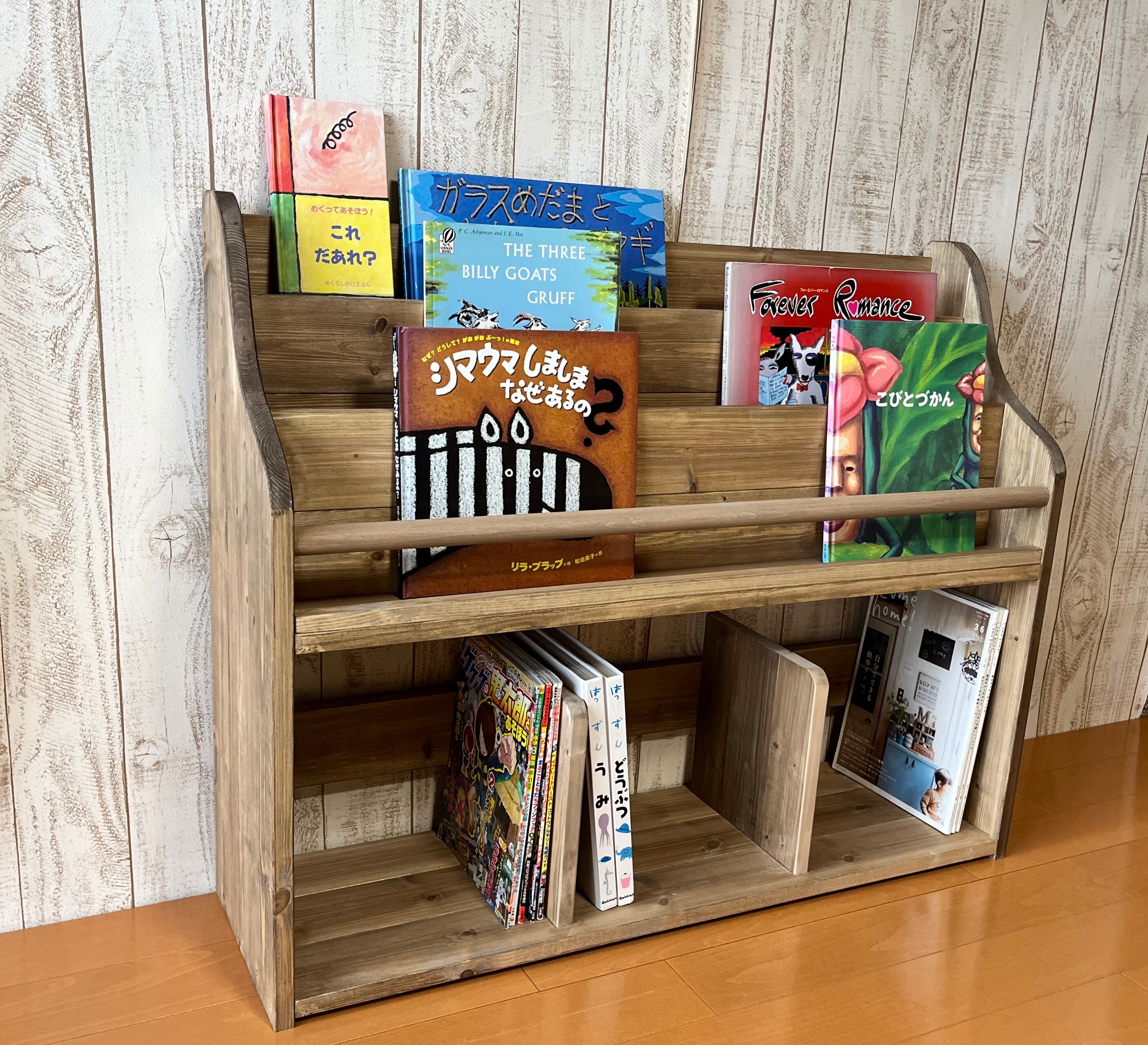 お子様が出し入れしていただいても、絵本・雑誌が後ろにすべり落ちてしまうことはありませんのでご安心して使っていただけると思います。