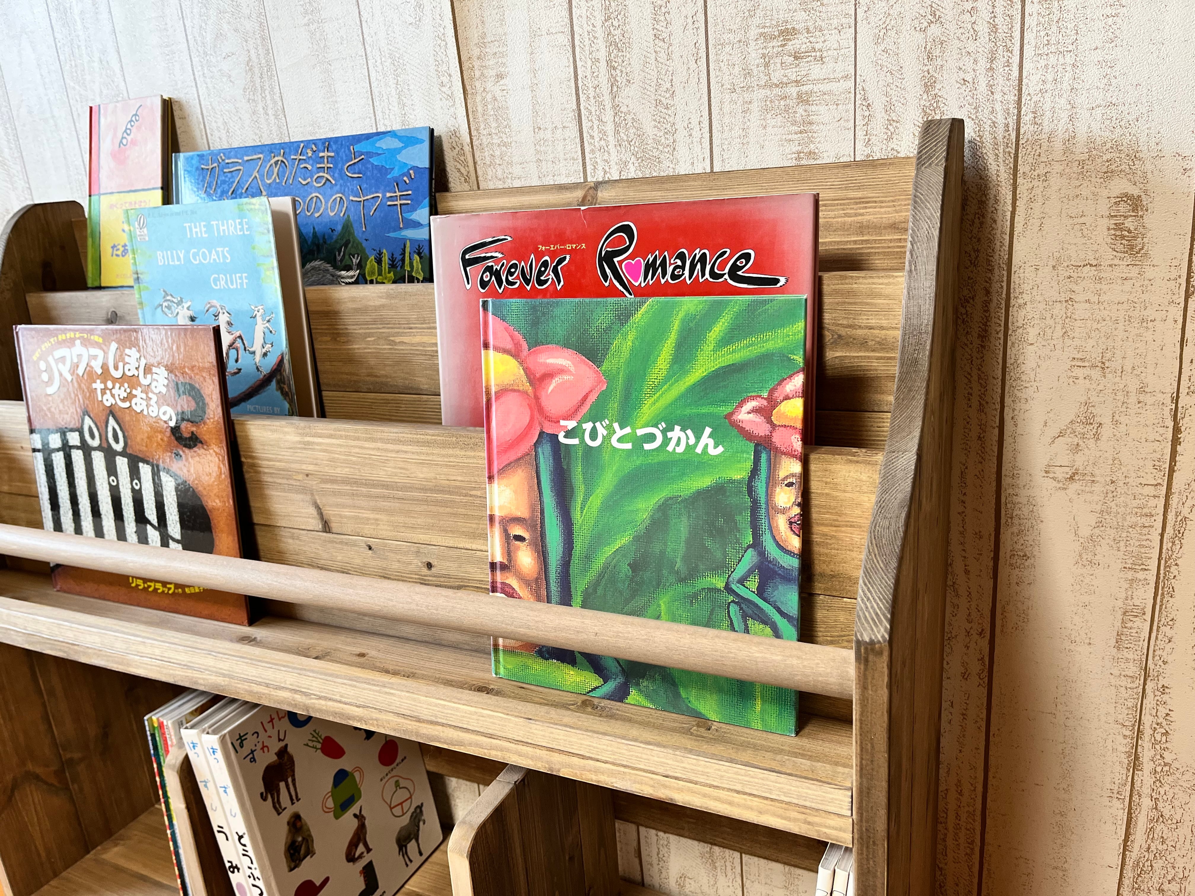 本棚の上部は表紙を立てかけて置いて頂くことが出来、お子様が手に取りやすく、お気に入りの本を見つけやすいです。