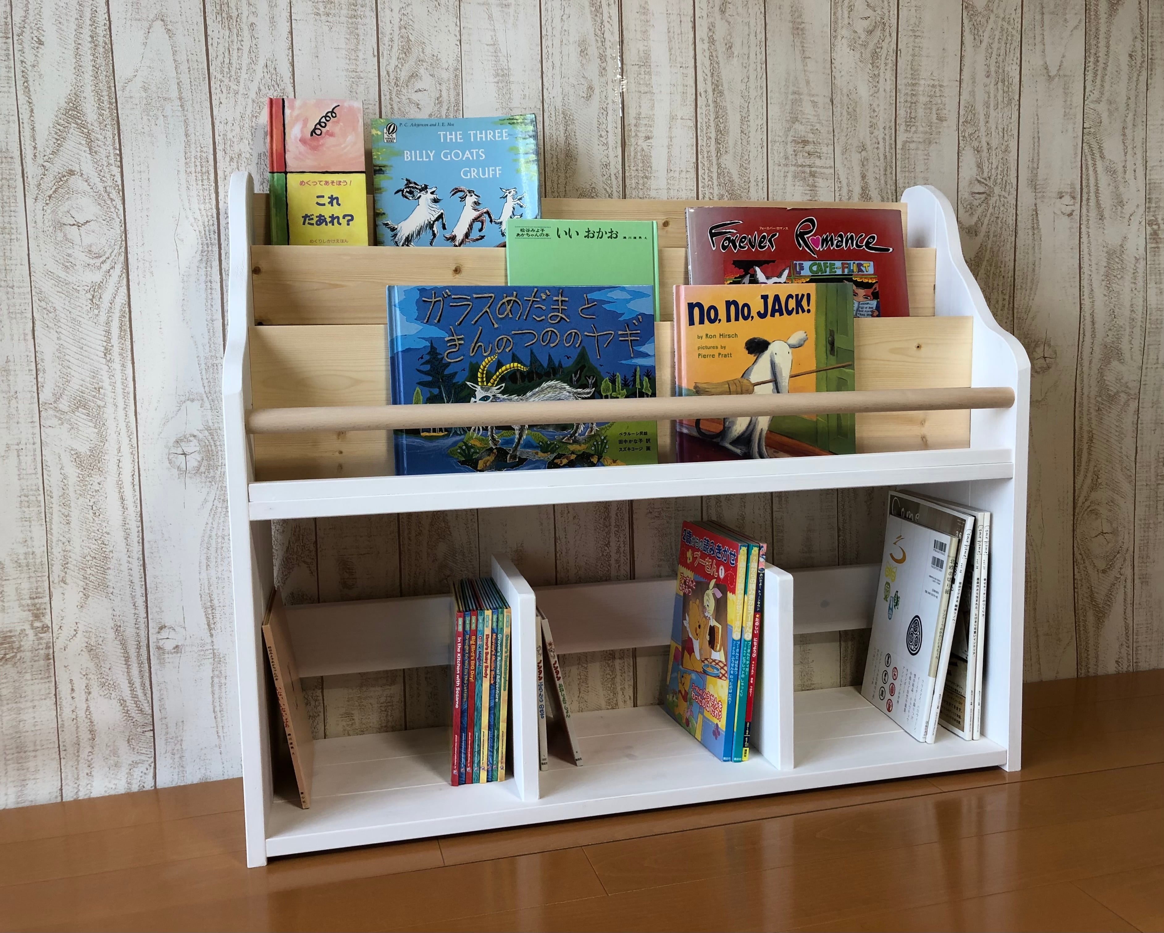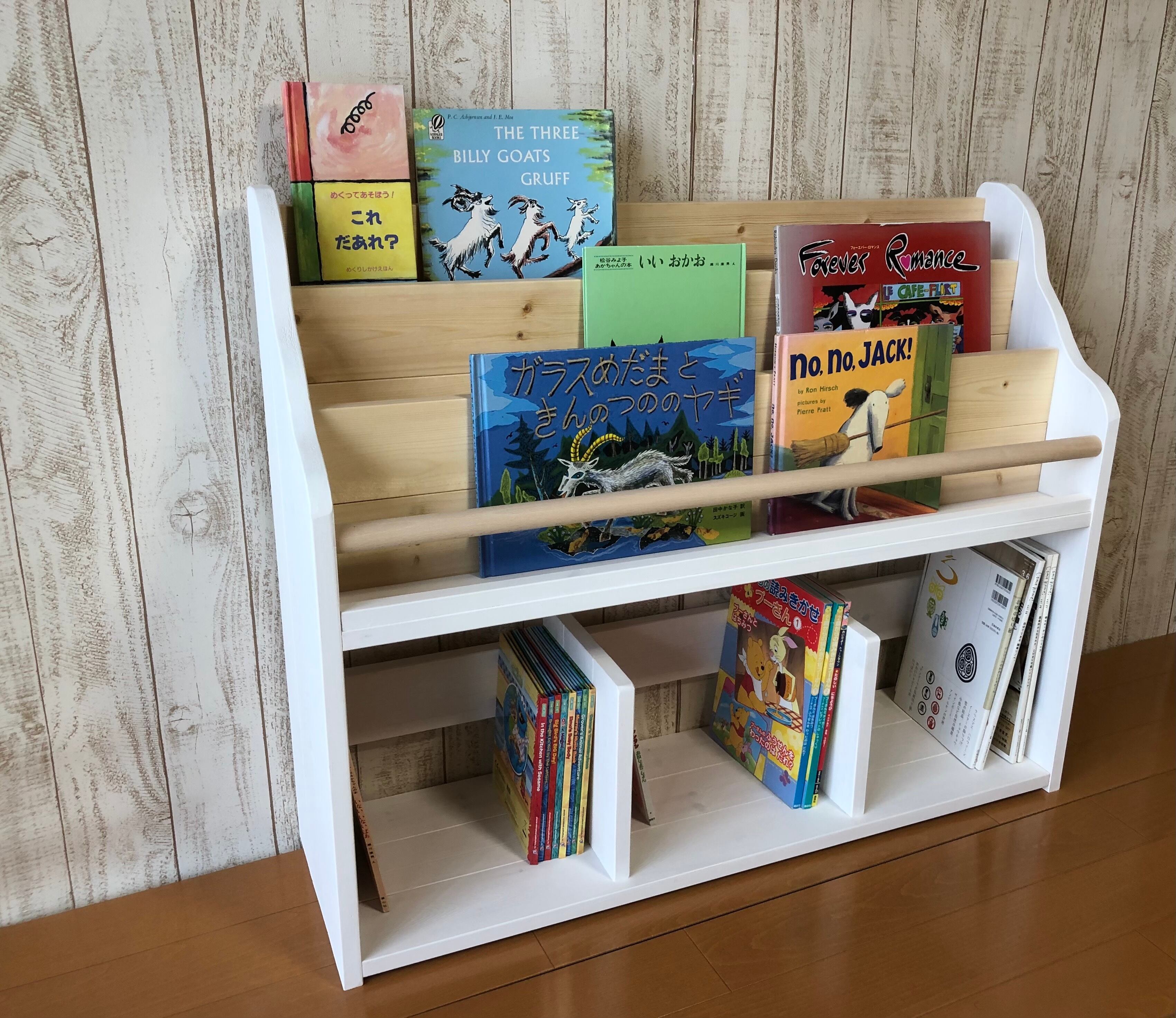 本棚の上部は表紙を立てかけて置いて頂くことが出来、お子様が手に取りやすく、お気に入りの本を見つけやすいです。