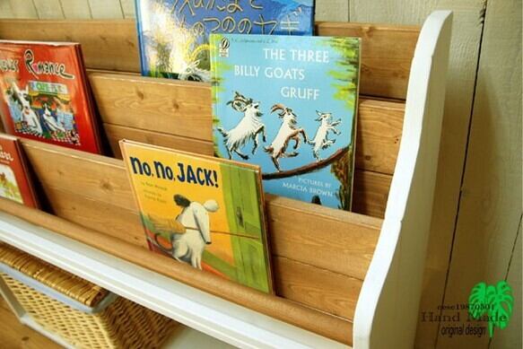 本棚の上部は表紙を立てかけて置いて頂くことが出来、お子様が手に取りやすく、お気に入りの本を見つけやすいです。