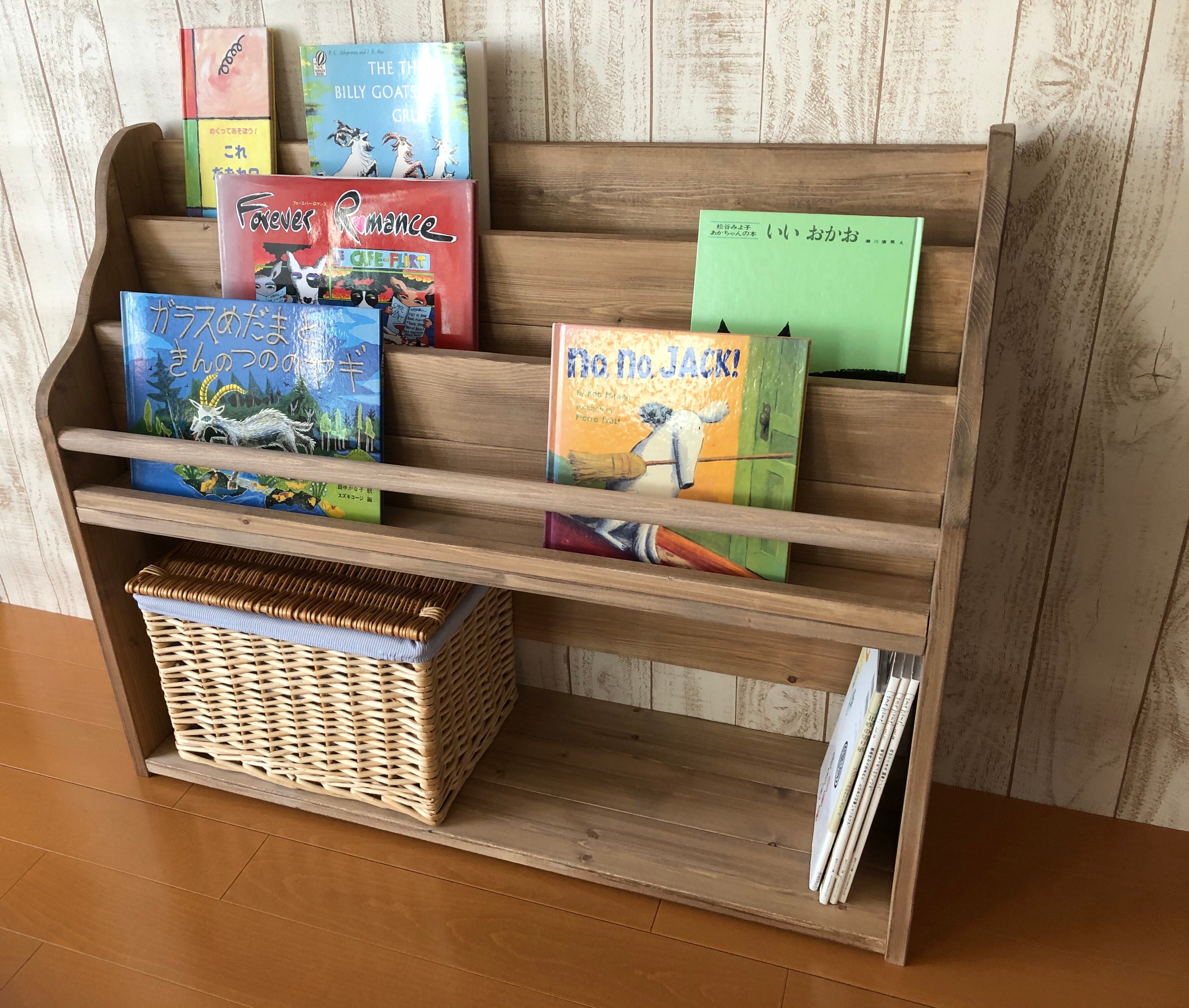 お子様が出し入れしていただいても、絵本・雑誌が後ろにすべり落ちてしまうことはありませんのでご安心して使っていただけると思います。