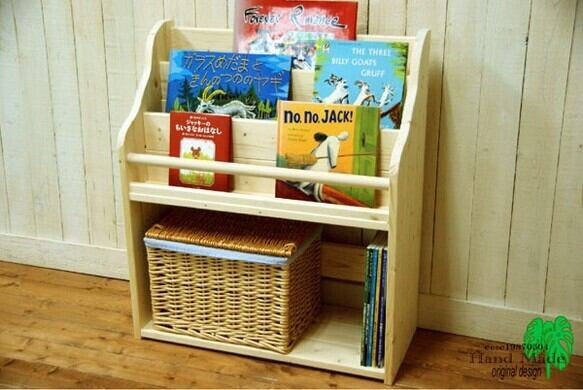 本棚の上部は表紙を立てかけて置いて頂くことが出来、お子様が手に取りやすく、お気に入りの本を見つけやすいです。