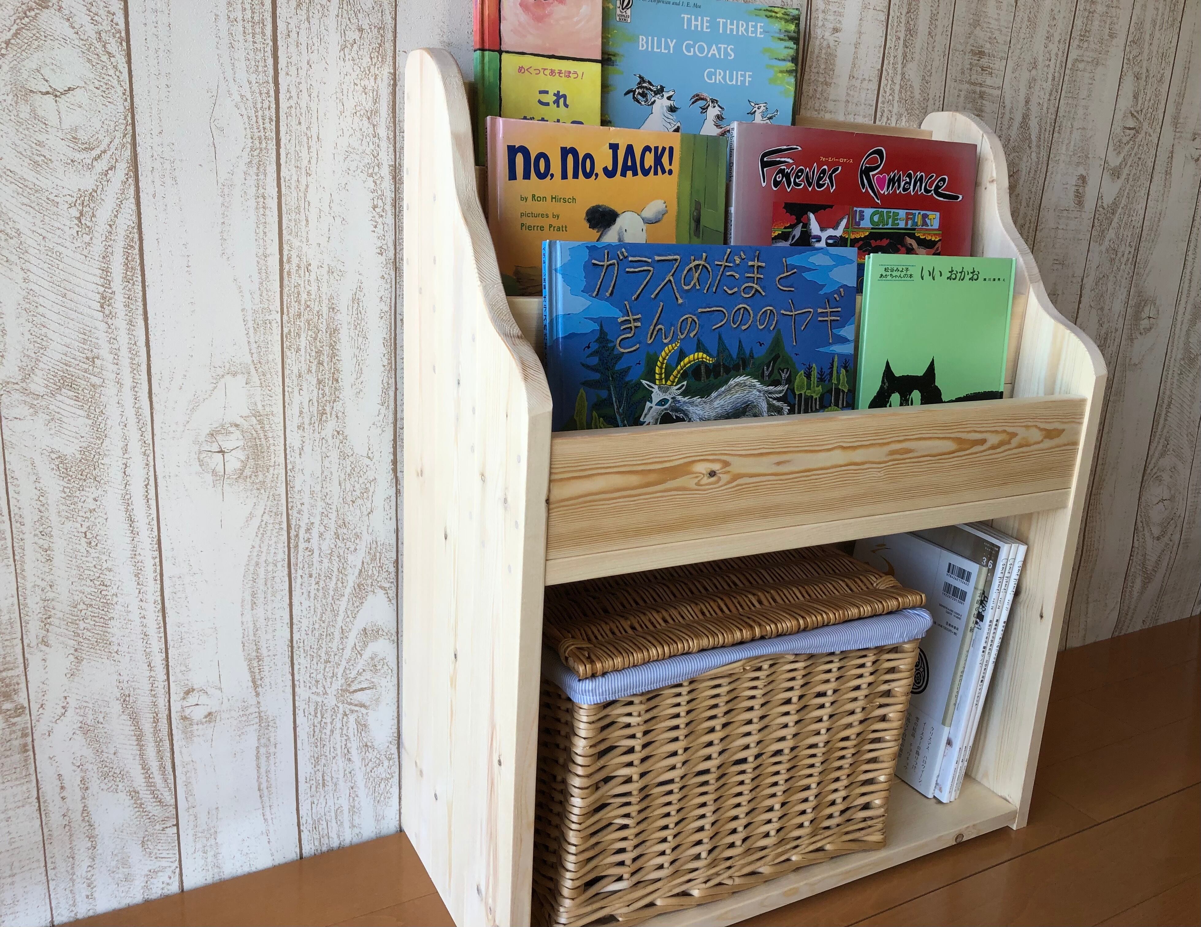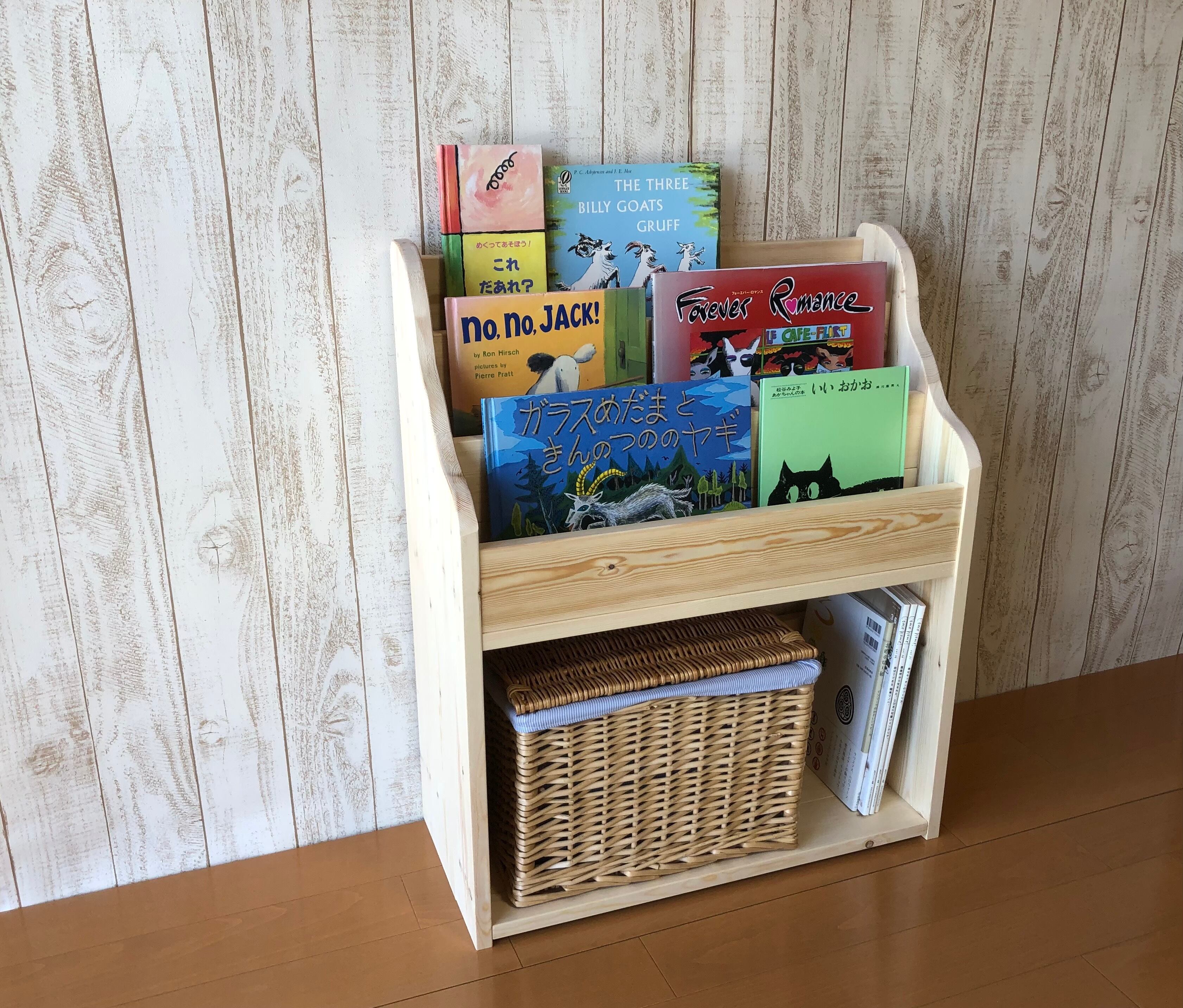 本棚の上部は表紙を立てかけて置いて頂くことが出来、お子様が手に取りやすく、お気に入りの本を見つけやすいです。
