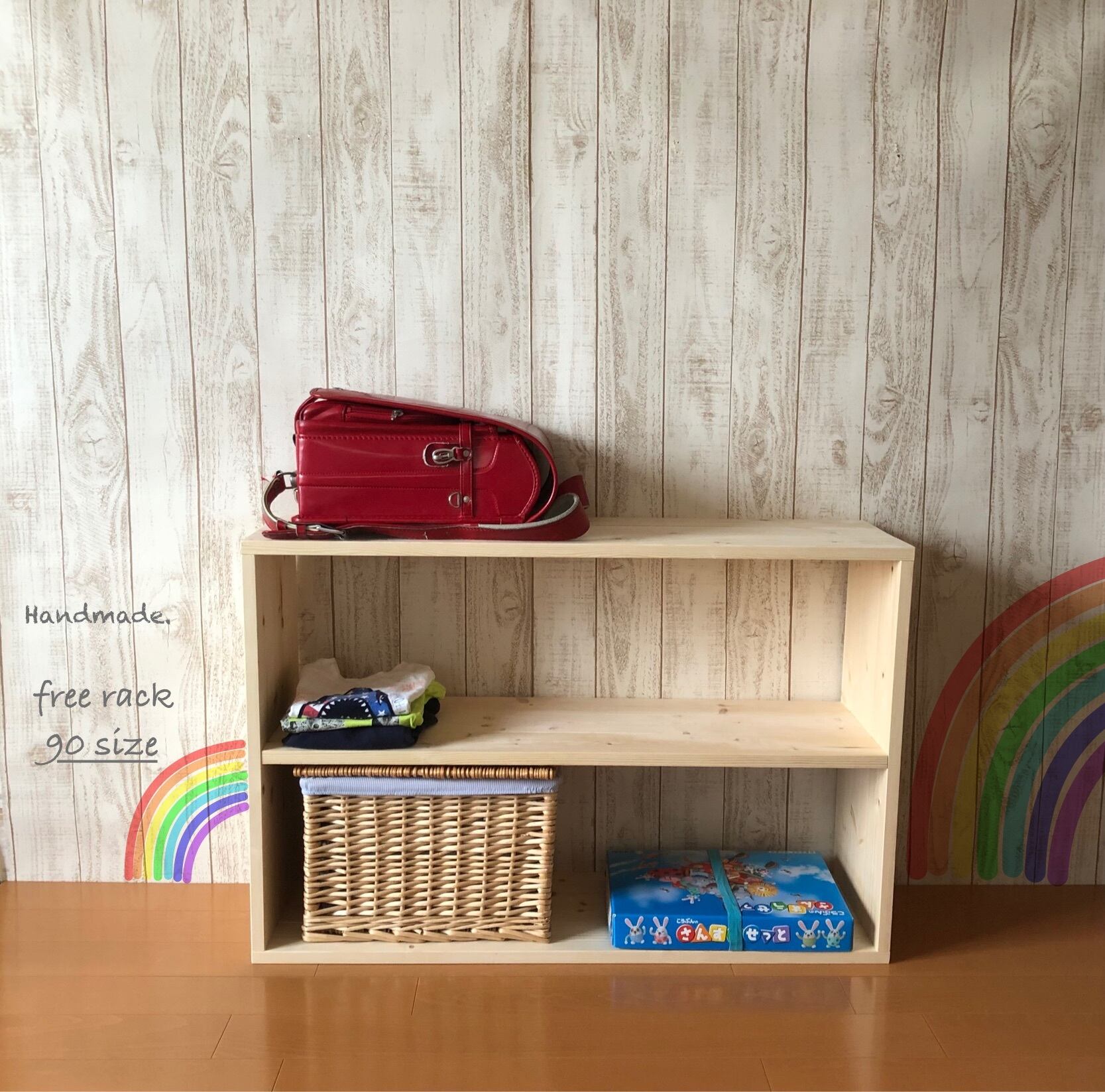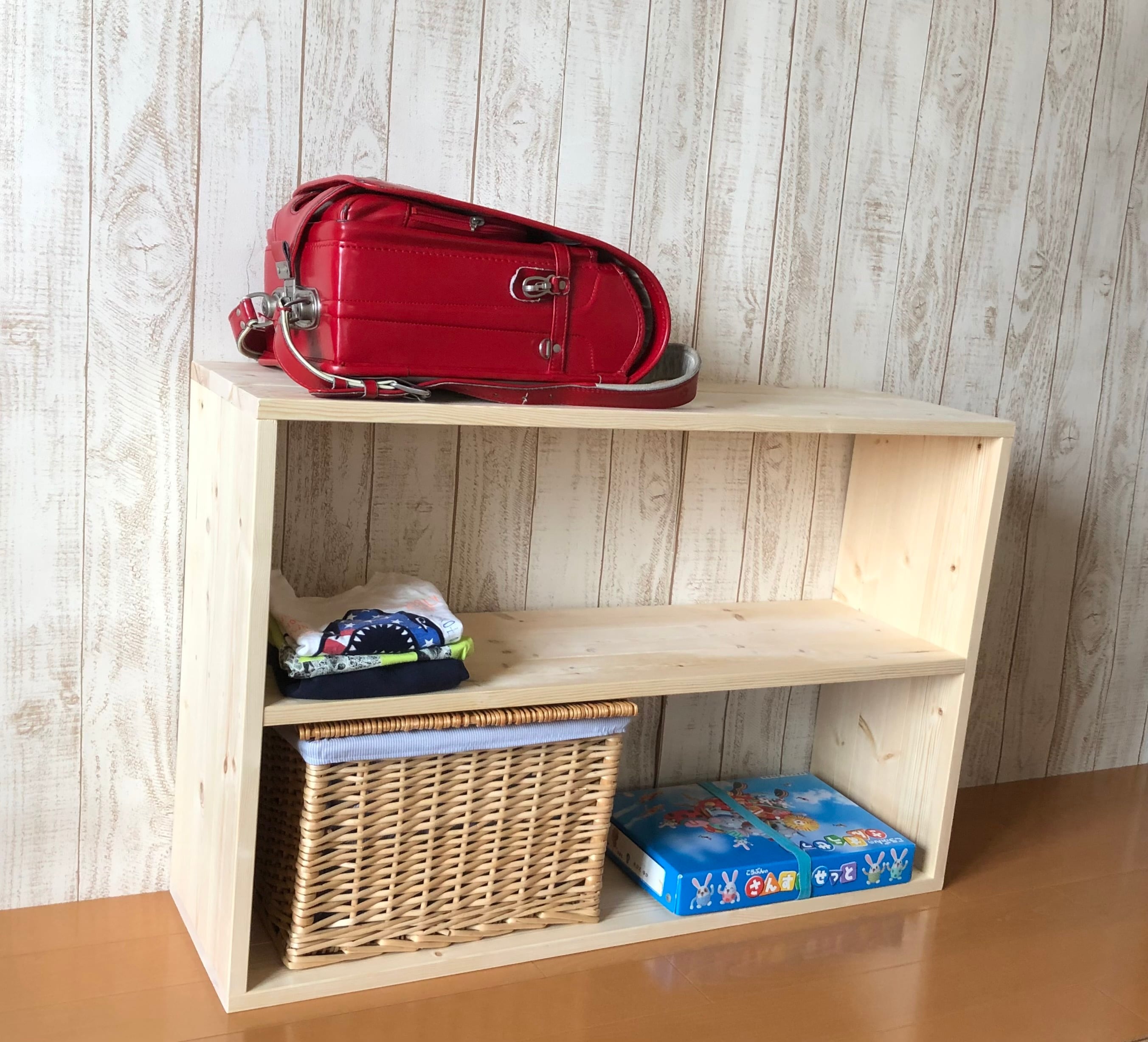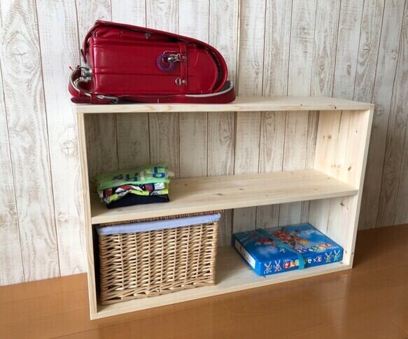 本やおもちゃ、教科書、そしてランドセルまで。スッキリ収納できる木のラックができました