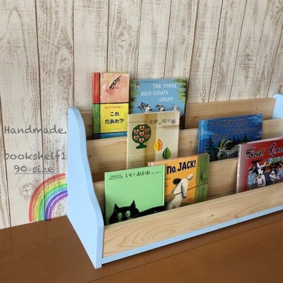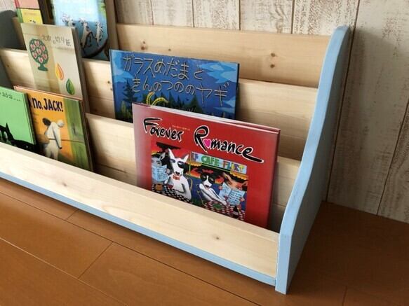 本棚の上部は表紙を立てかけて置いて頂くことが出来、お子様が手に取りやすく、お気に入りの本を見つけやすいです。