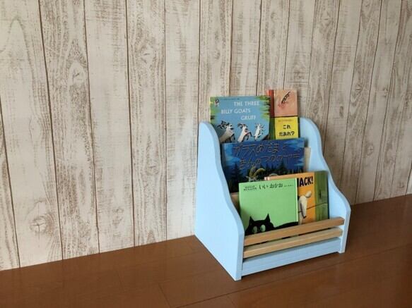 【送料無料】表紙の見える絵本棚*絵本棚*マガジンラック*家具*~㊤マンチェスターブルー&ミディアム~39